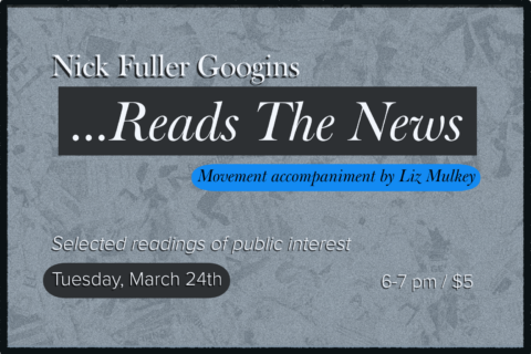 Writer, novelist, and educator Nick Fuller Googins reads a selection of new and historical news items in this short-form public forum, featuring movement accompaniment by…