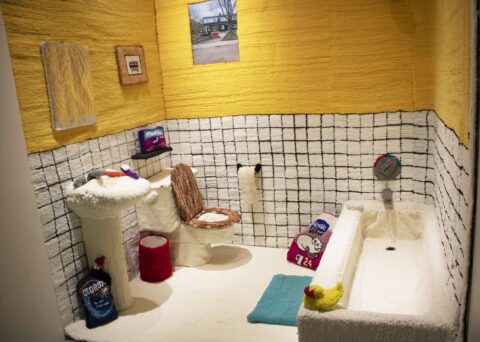This installation investigates how challenging narratives such as gender dysphoria and body dysmorphia can occupy space within the soft, queer, fleshy boundaries of wool-based craft.…