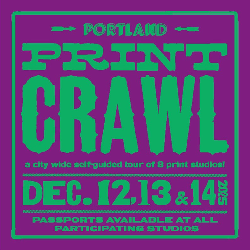 The Portland Print Crawl is back at Pickwick Independent Press on December 12th through 14th with select SPACE Open Studios on Friday, December 12th 5-9pm!